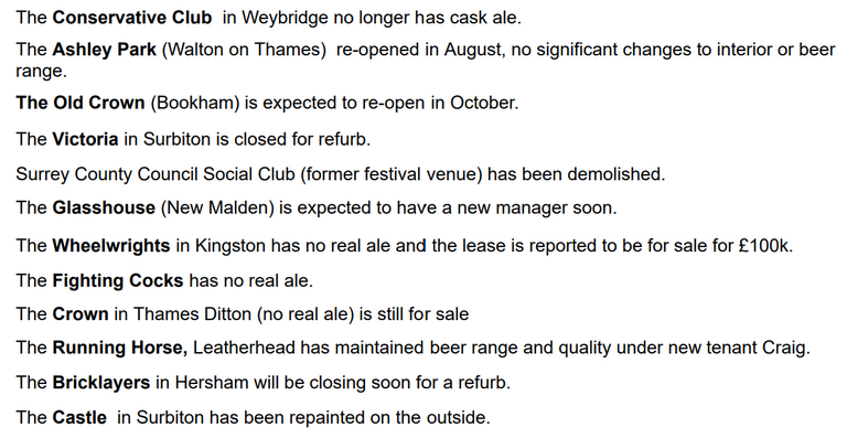 Here is the latest news about pubs and breweries in the branch area - Sept / Oct 2025
